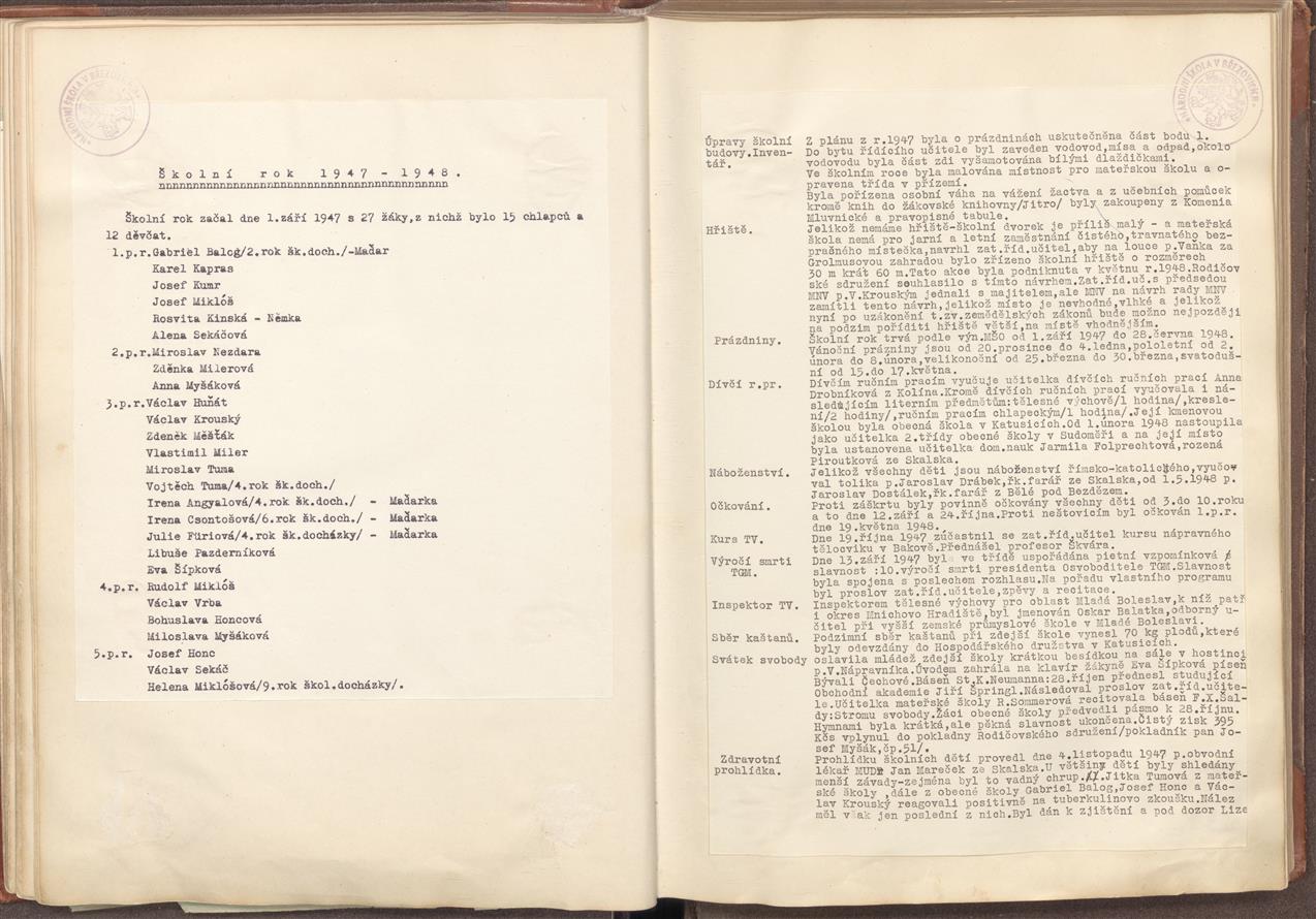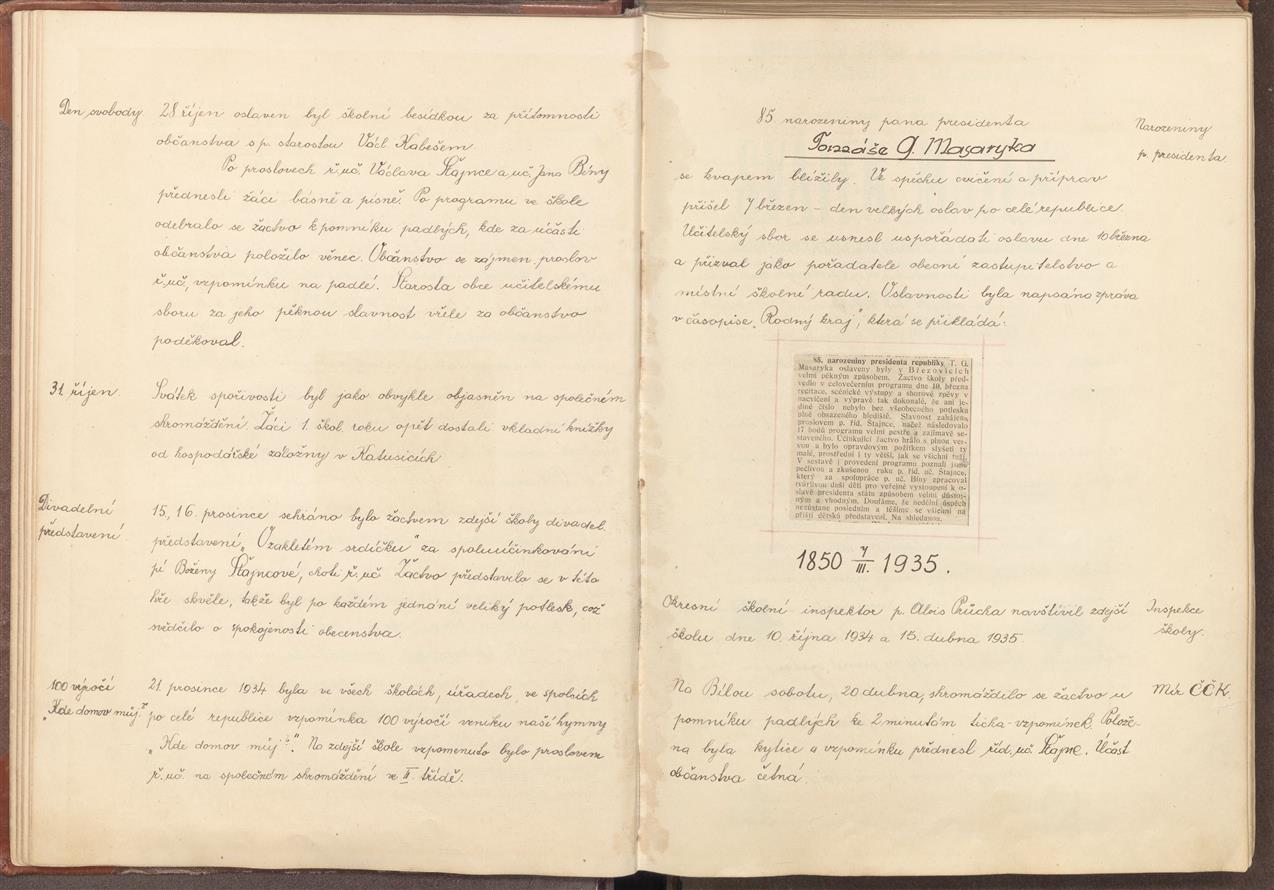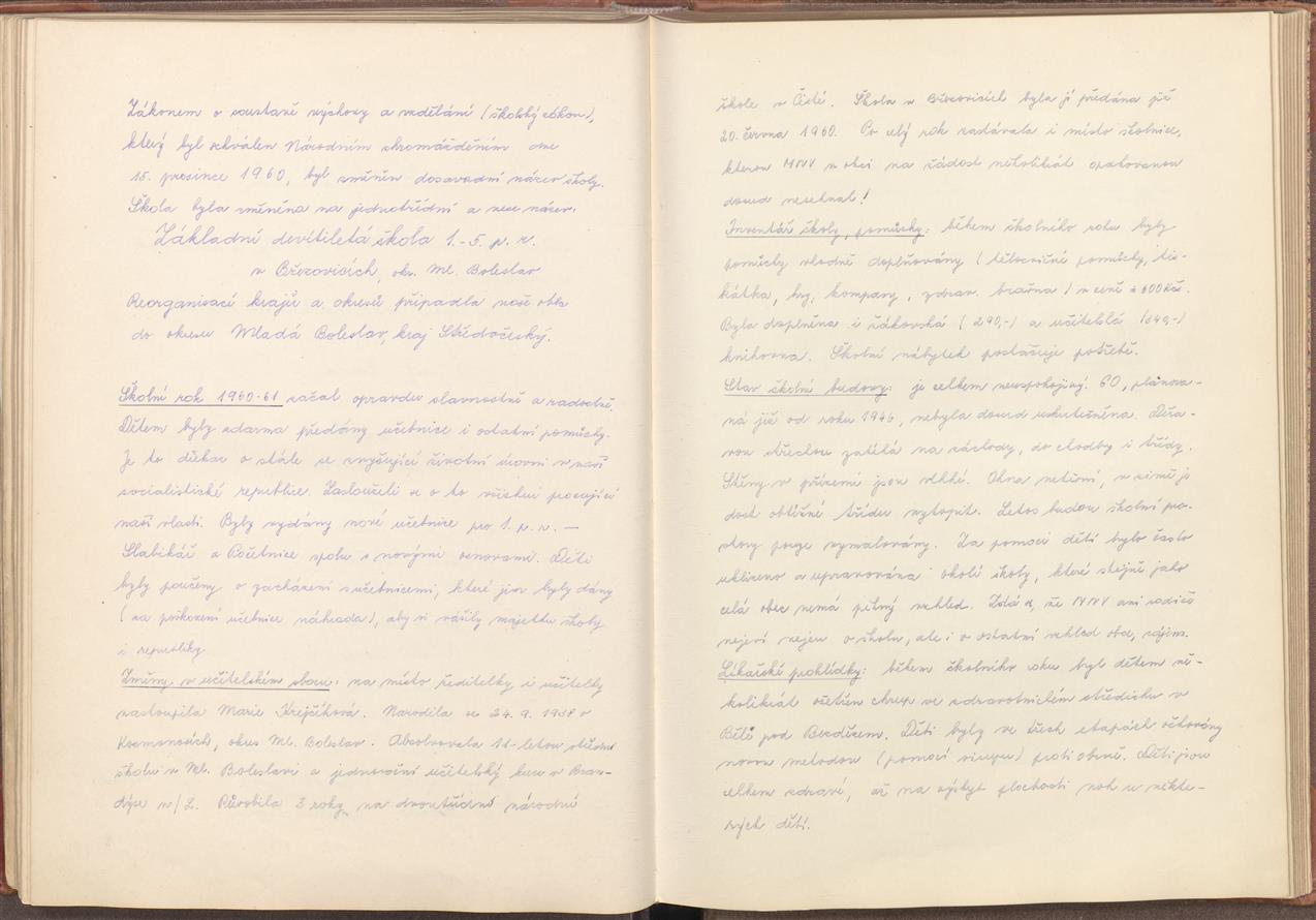 Kronika obecní školy v Březovicích 1920–1963