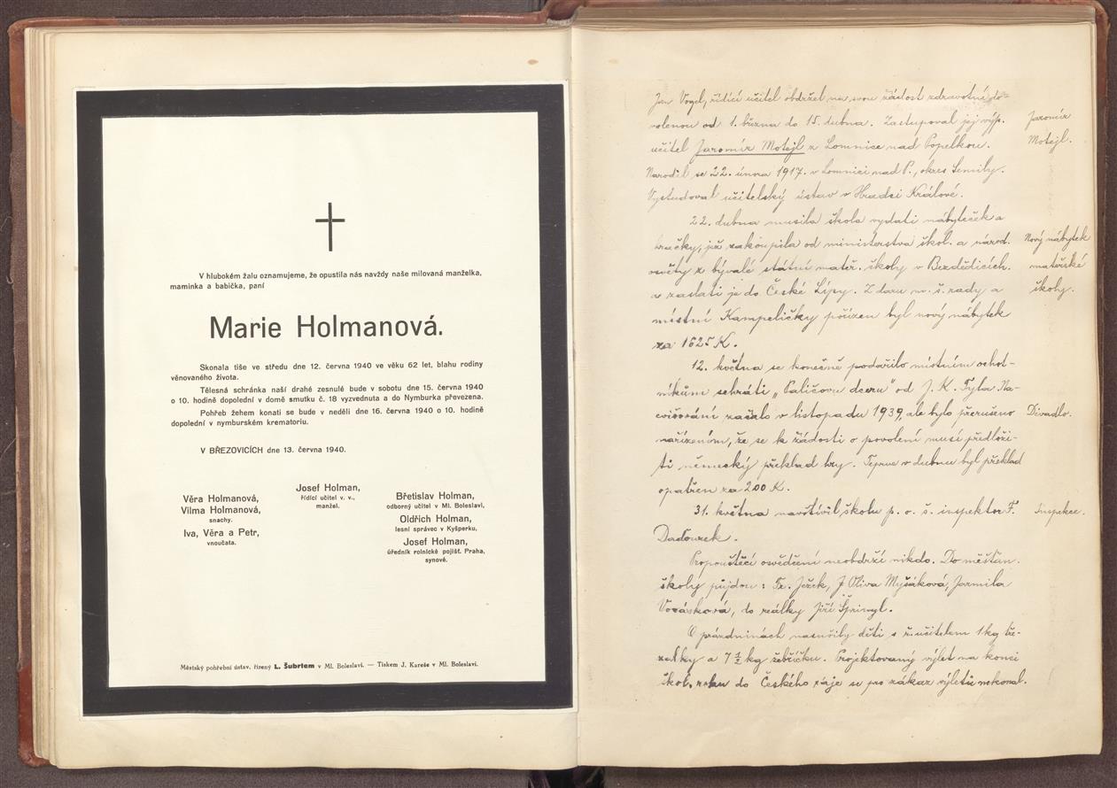 Kronika obecní školy v Březovicích...