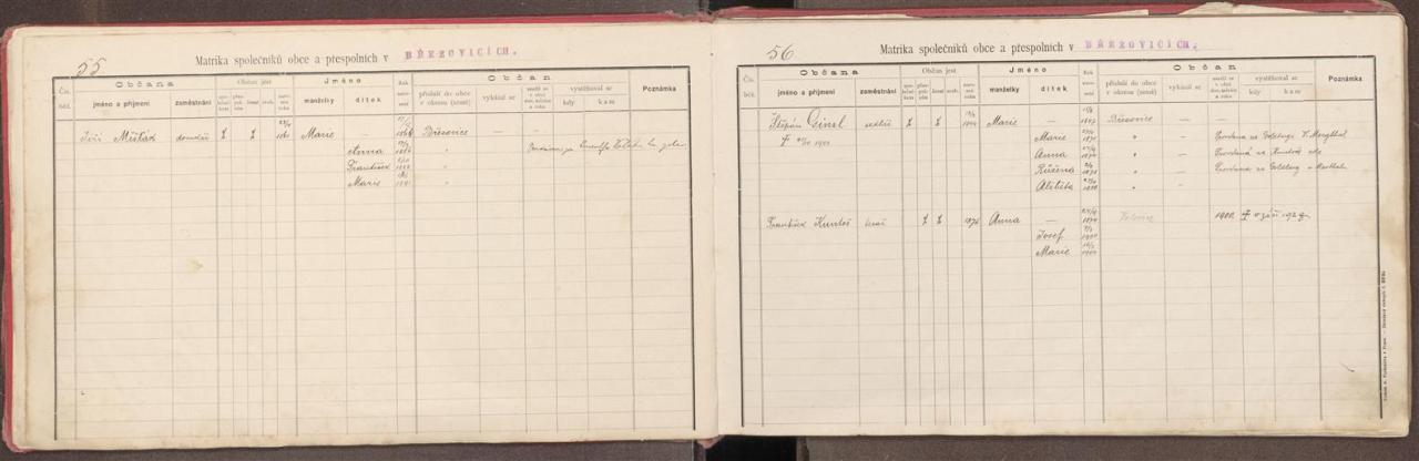 Matrika společníků obce Březovice 1
